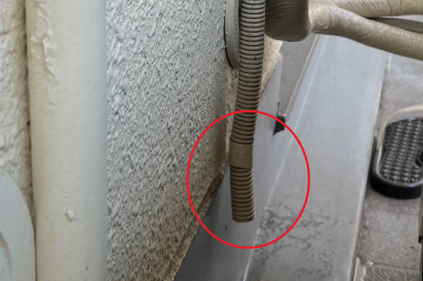 ・ドレンホースが壁の中で逆勾配になっている