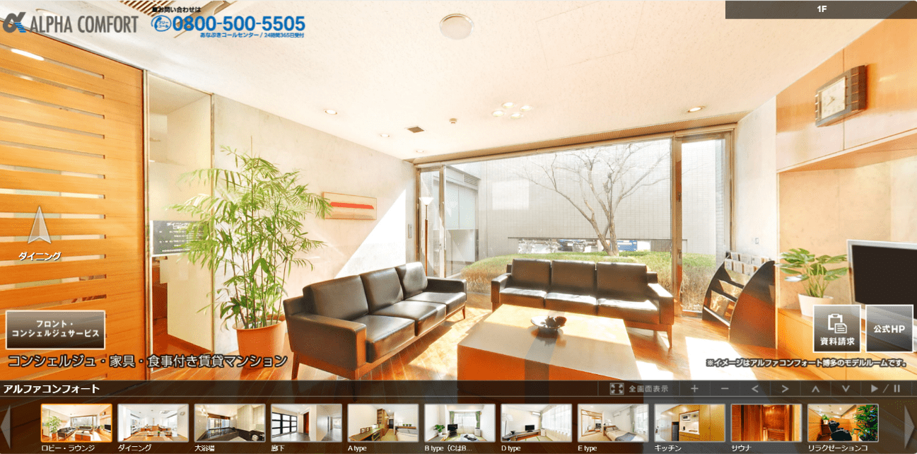 共用部と同じURLとなりますので、共用部の雰囲気を再確認しつつ、室内の様子もご覧いただくことができますので、ぜひご覧ください!
