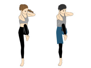 やり方としては、『背筋を伸ばし、右肘と左膝をつけ、次に左肘と右膝をつけ、これを繰り返す』運動です。
