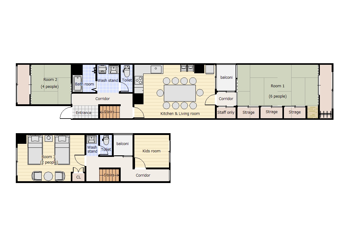 100㎡超の広いメゾネットのお部屋を完全貸し切り