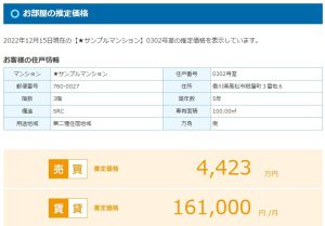写真のように【売買・賃貸】の査定額が即時に表示されます。