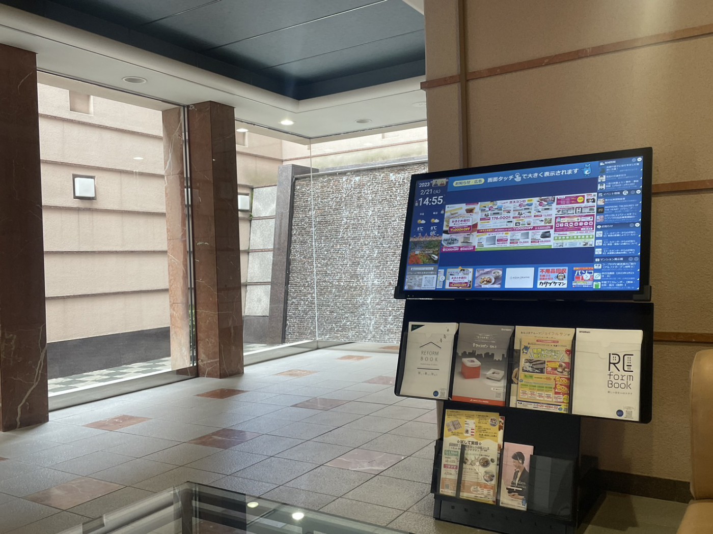 デジタルサイネージでは、43インチのモニターをエントランスに設置し、各種情報発信を行っております。より迅速に居住者様が情報をキャッチできるように有効活用頂いております。