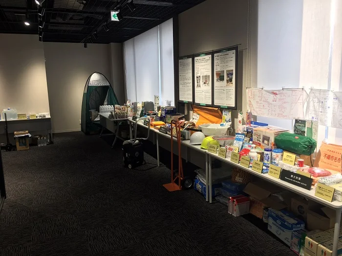 ↓すぐにでも使用できる防災グッズや非常食をご用意しております。