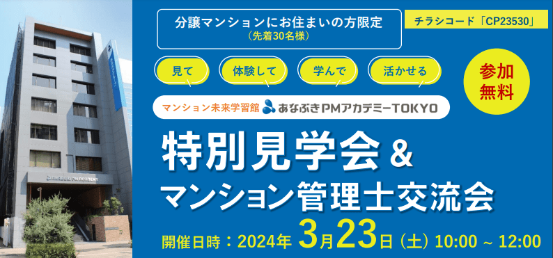 なんと2024年3月23日(土)10~12時にて見学会とマンション管理士による相談会を実施いたします!