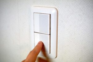 照明スイッチの高さは床から概ね1200mmの高さに設置されており、一般的なコンセントは床から250mmの高さに設置されています。