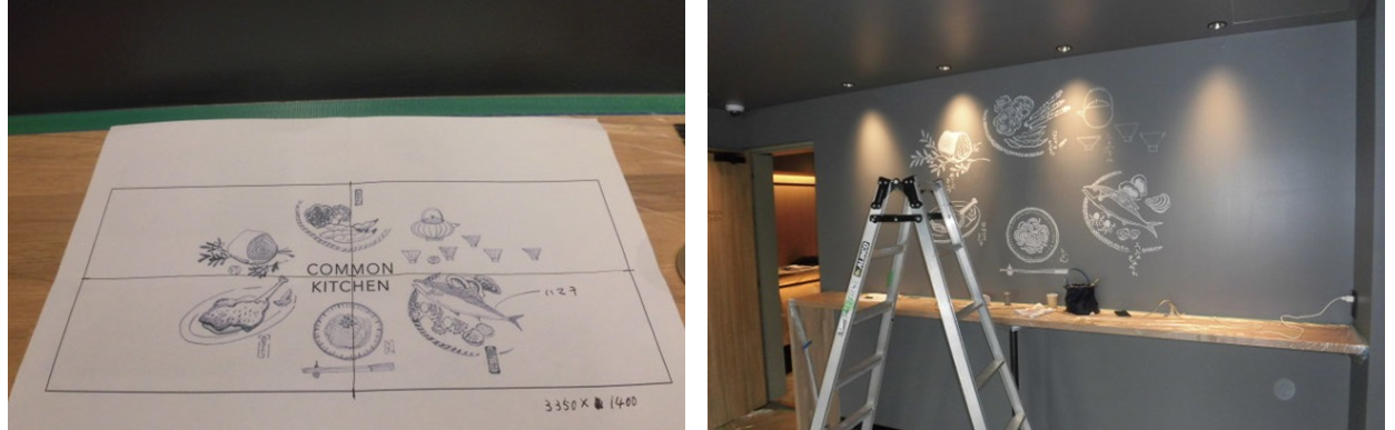 つづいてロビーとコモンキッチンに描かれた絵のご紹介。