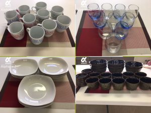 調理器具や食器、カトラリーもございます。お子様用の食器も準備していますよ。旅行の際にもキッチンが使えると、ちょっとした夜食や朝ごはんの調理が出来て嬉しいですよね。