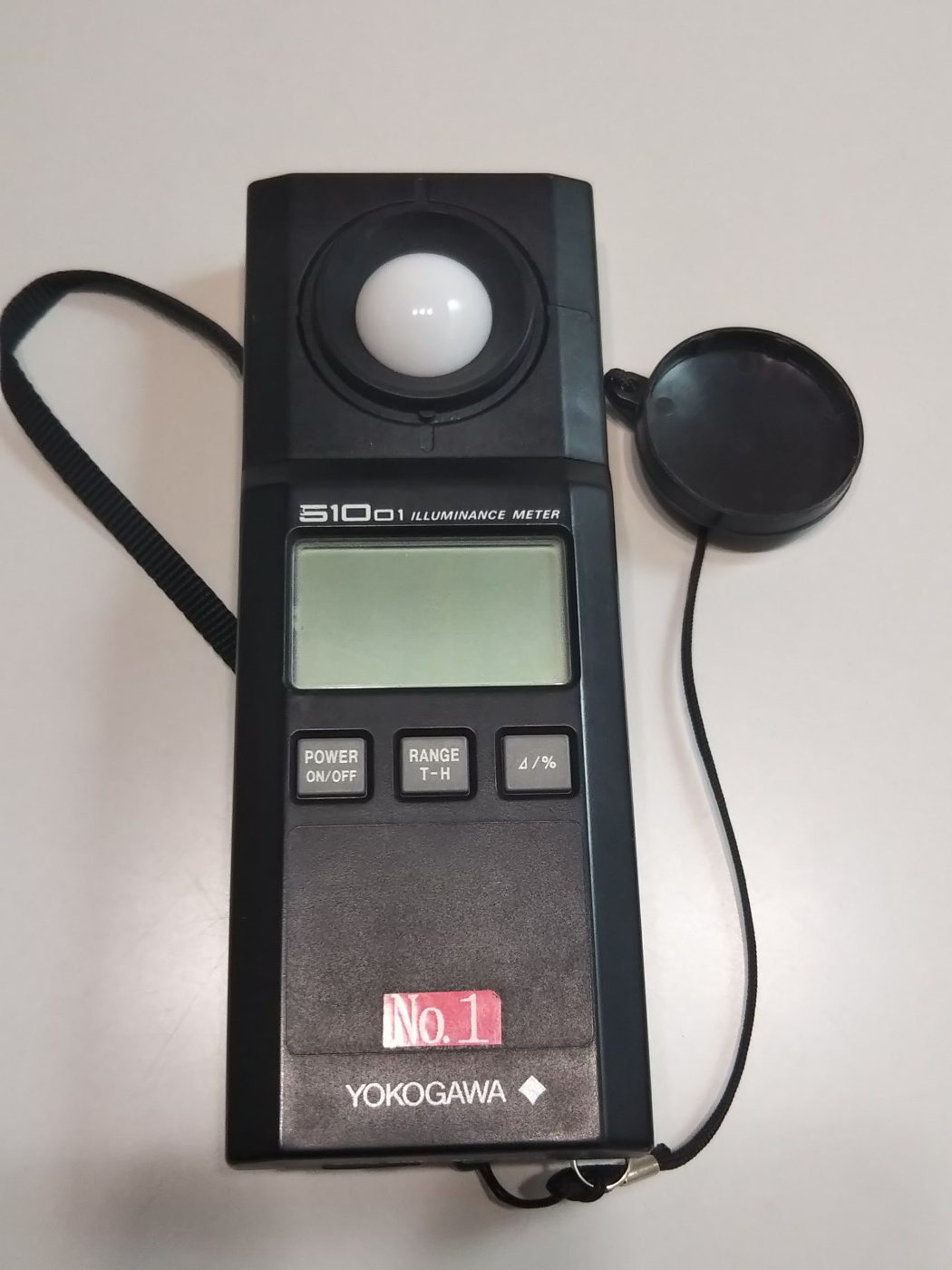 そして照度計(右写真)を用いて、床面での照度を測定します。