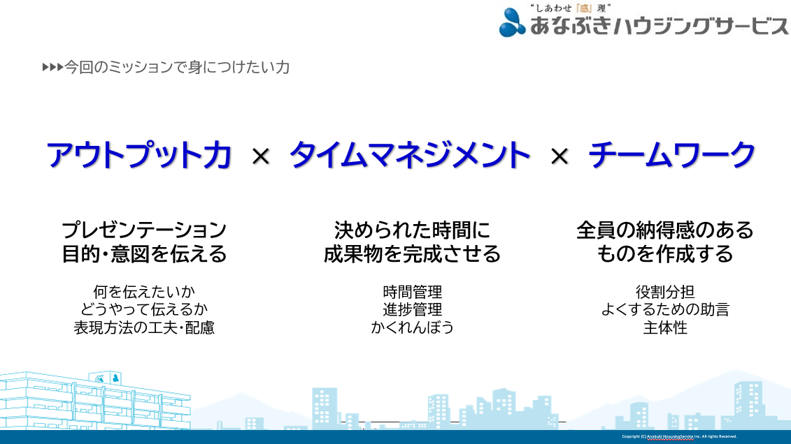 これぞ、ハウジンググループ流新入社員研修というのが『グループミッション』