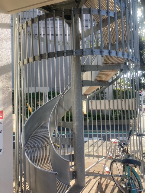 救助袋同様に主に自力避難が困難な方が利用される施設で使用される設備です。 見た目はまさに公園にあるようならせん状の滑り台です。