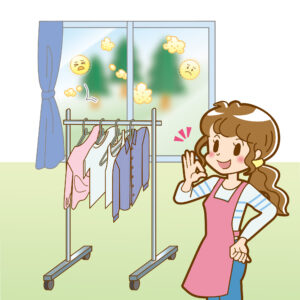 洗濯物を外に干すと花粉が付着してしまうため、花粉の多い時期は室内干しをすることで