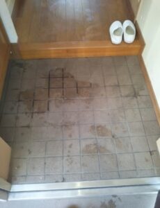 玄関は水捌けが悪かったり、排水口が近くない場合もあるので、バケツを用いて水を流して掃除をしない方がよいです。乾かないで湿った状態が続くと床を傷めたり、雑菌が繁殖したりし、かえって悪影響になってしまいます。