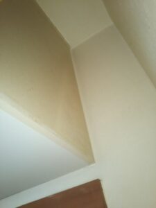 壁紙については頻繁に清掃することは容易ではありませんが、場所によっては埃や油汚れが付着し、黄ばんでしまったりしてしまいます。(下部の写真はキッチン付近の壁紙)
