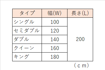 ベットはシングル・セミダブル・ダブル・クイーン・キングと種類によってサイズが異なります。
