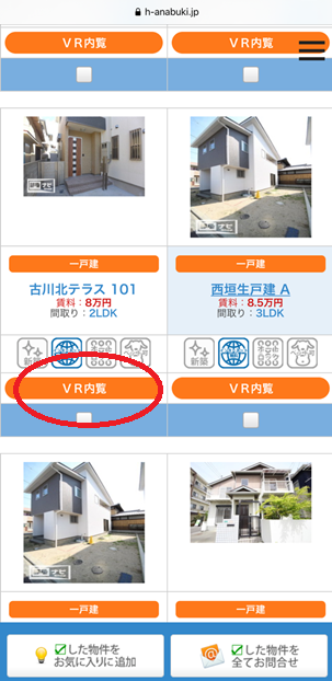 早速、部屋ナビshopのネットサイト内でVR内覧を行う方法をお教えします。