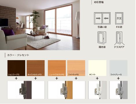 優れたデザイン性で空間に調和するリノベーションシリーズ。現代のインテイリアに馴染む「デザイン」でも選べる窓です。