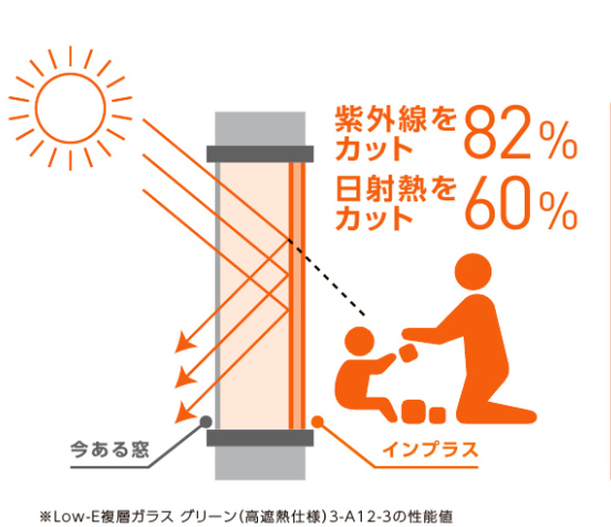 「Low-E複層ガラス」は、一般複層ガラスに比べ、より多くの紫外線をカットするため紫外線対策にもおすすめです。
