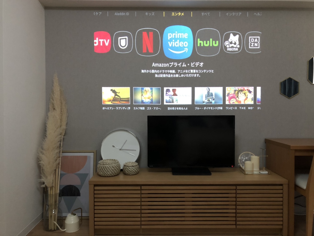 室内には、今話題の照明一体型プロジェクター『PopIn Aladdin』を標準装備しております。