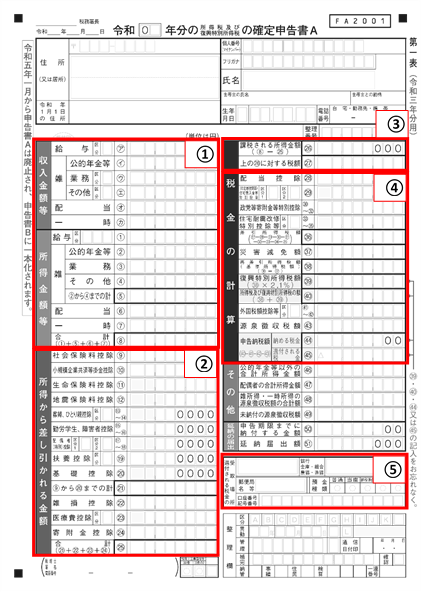 確定申告書(A様式)記入時のポイント