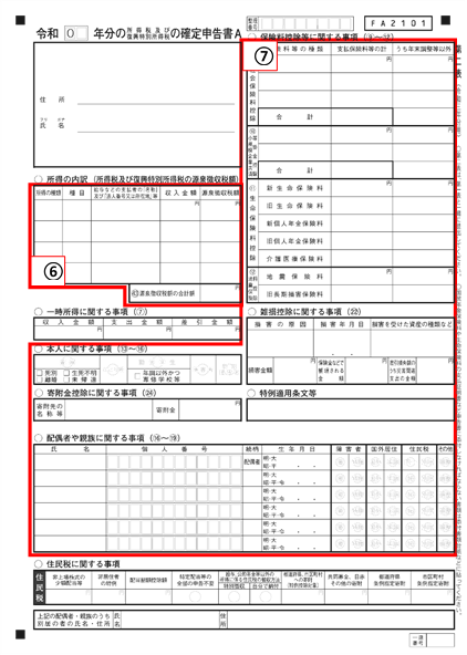 ⑦該当する所得控除の内訳を記入