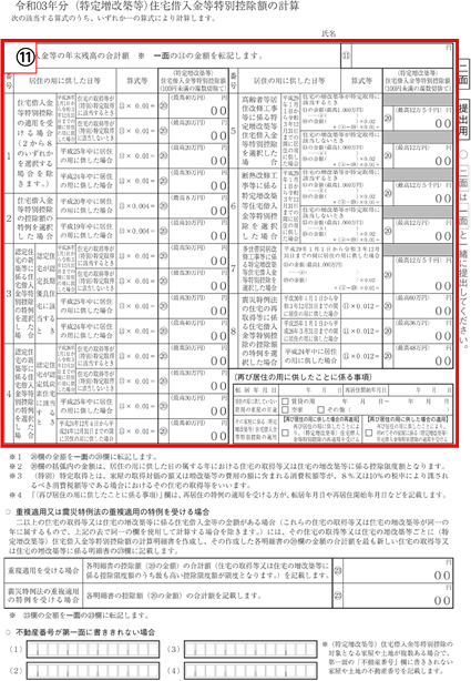 ⑩二面で算出した住宅ローン控除額を転記する