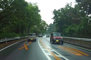 1)イエローカットの多さ(車線変更不可の黄色い線を無視して車線変更)