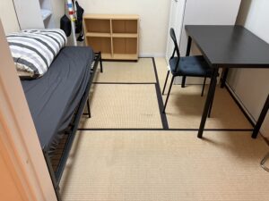 すっきりする敷き方は4.5帖の和室の真ん中に0.5畳を敷き、囲うように4枚を並べる事です。