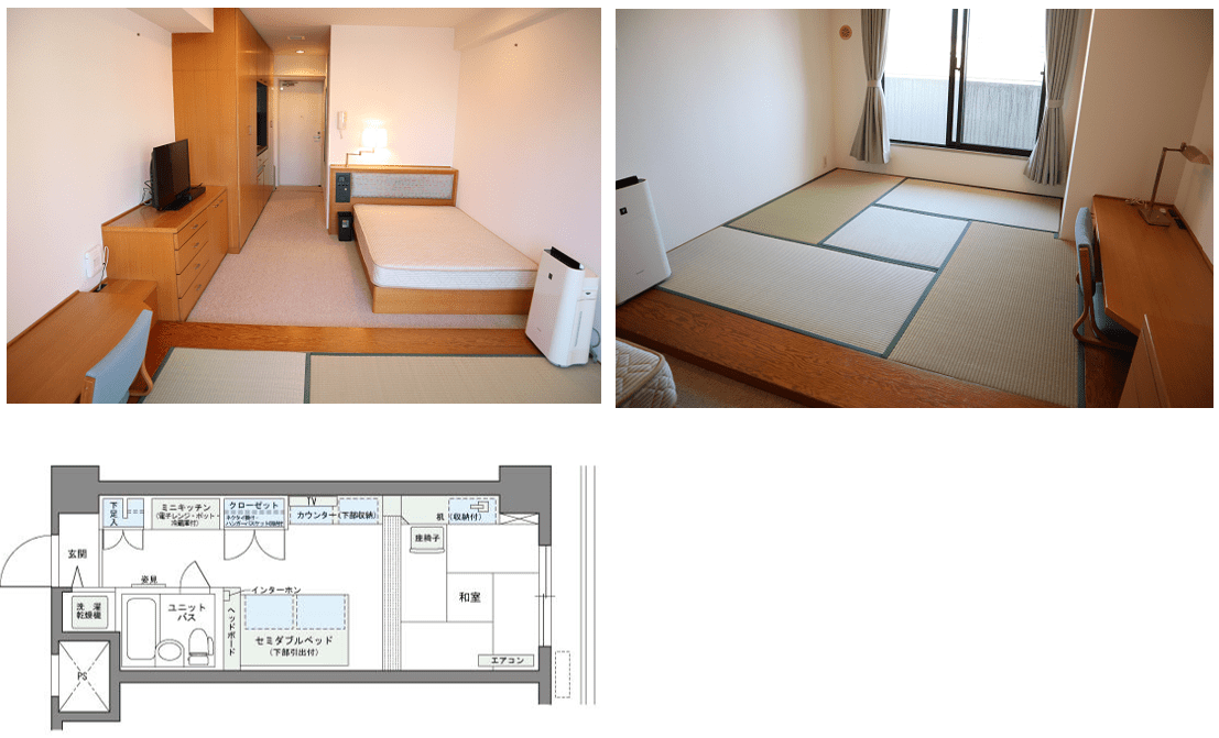 Bタイプは畳スペースがある1Rで、足を伸ばしてくつろいだり、ご家族が遊びに来た時にお布団を敷いたり、畳のスペースを一部屋として活用できます。