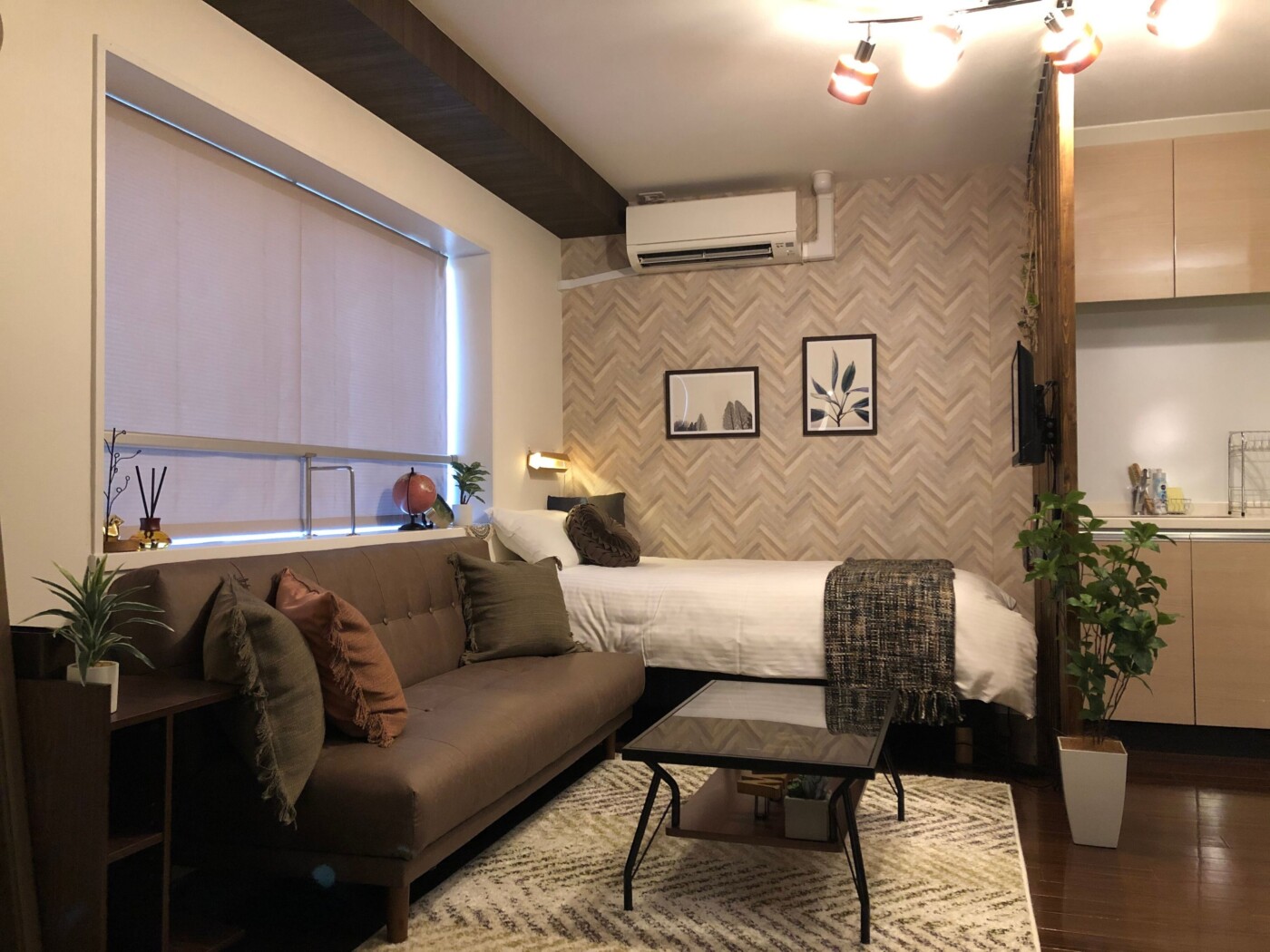 コンパクトなお部屋でありながら、足を伸ばしてくつろげる大きなソファもあるので、出張や旅行中でもゆったりくつろげる素敵な空間です!