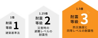 耐震等級 3 :耐震等級1で想定する地震の1.5倍の強さの揺れに耐えられる