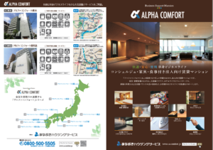「アルファコンフォート」とは、あなぶきグループが展開する法人向け賃貸マンションになります。お仕事で日々忙しい皆様のための、法人向け賃貸マンションです。