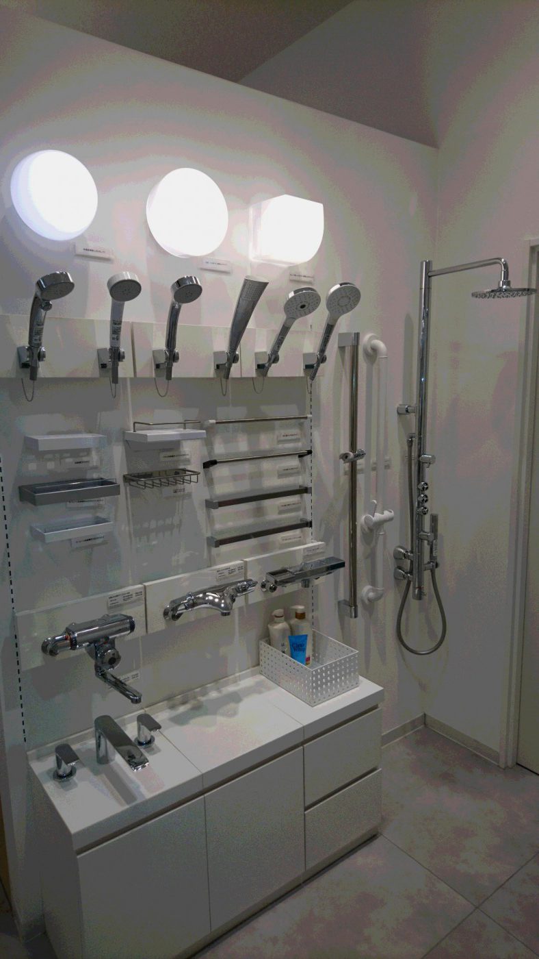 お風呂のシャワー水栓や照明も実際に手に持って確認ができます。