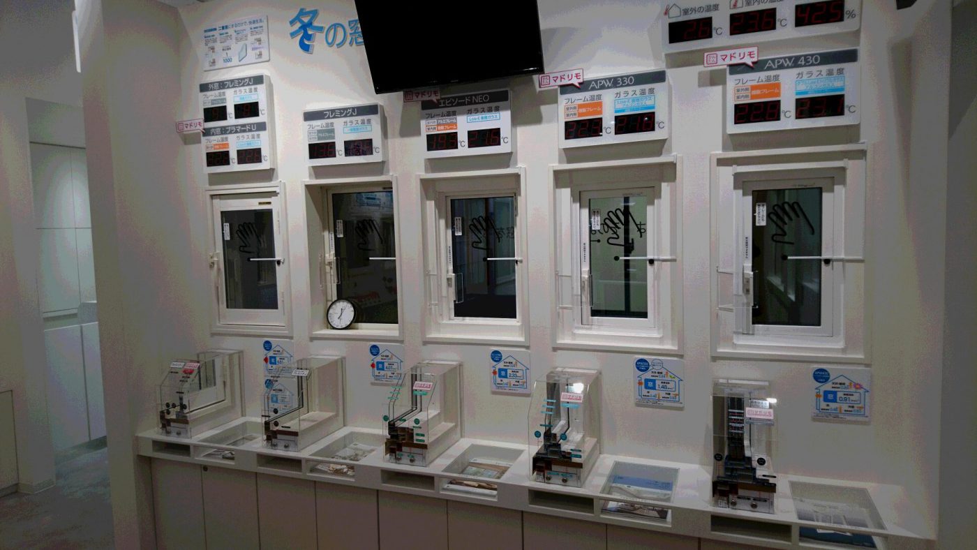 TDYのYにあたるYKKのブースです。さまざまな窓や窓枠が展示してあり、写真のような断熱効果や結露抑制効果を体感できる展示もあります。