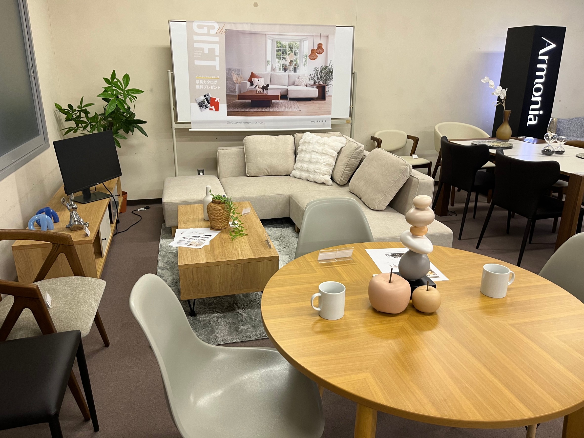 トレンドのモダンテイストのダイニングテーブルや定番のナチュラルテイストの家具など、たくさんの商品が並び会場の雰囲気もぐっと華やかになりました!