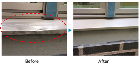 アルミ建材、外壁・タイル・石、フローリング等の木質建材、家具などに付いてしまったキズ、大きなへこみや割れまで対応できます。