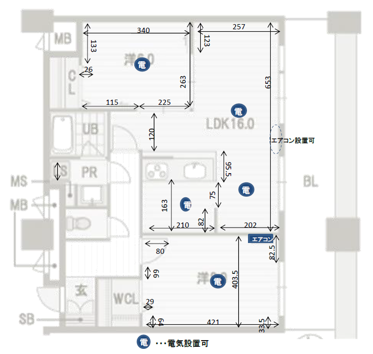 一般的なマンションの天井高は2.4mですが、背の高い食器棚や本棚を配置したい壁面にがあるかもしれません。