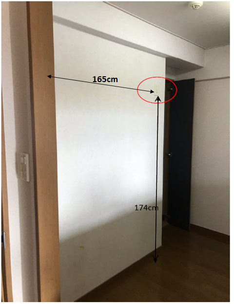 コンセントやスイッチを家具で隠してしまわないように、大きな家具を配置する面は、壁面からの長さ・床からの高さを測っておくとよいです。