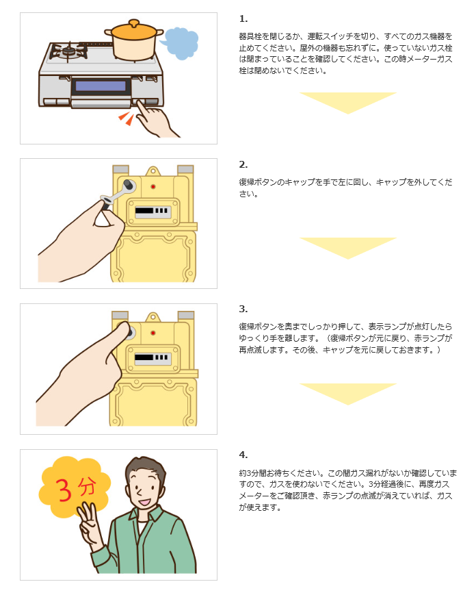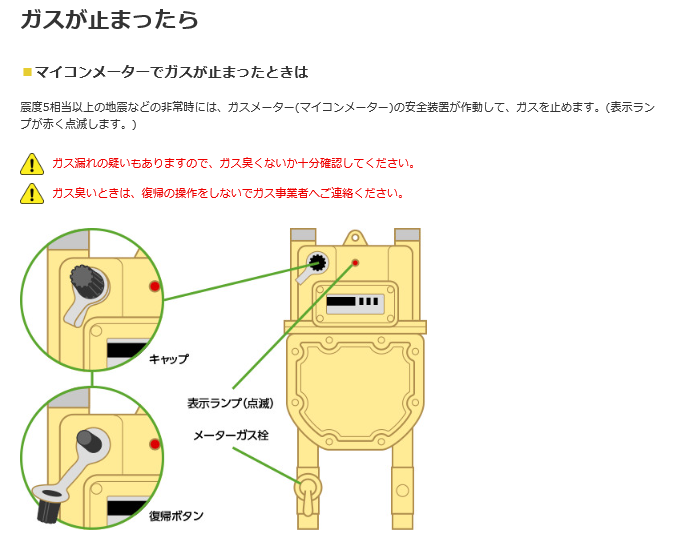 一度ご自宅のガスメーターや復帰ボタンの位置を確認しておきましょう。