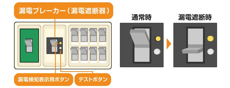 漏電したまま電気を使用すると感電や火災の危険があるので、家庭内で漏電している場合、漏電ブレーカーが落ちます。