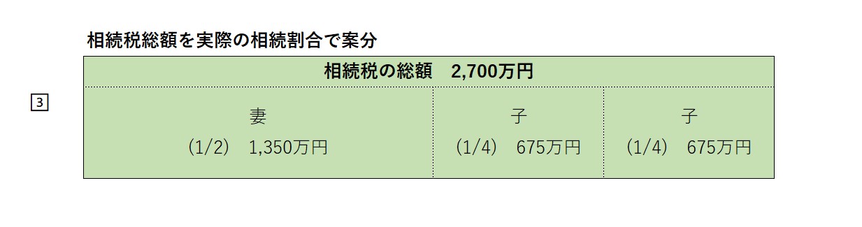 相続人は、妻と子2人で法定相続分どおりに相続した場合