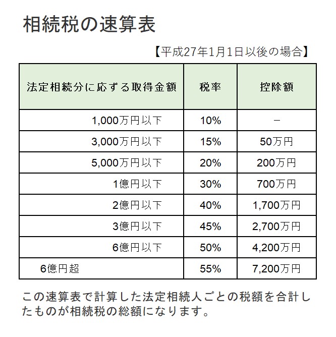 相続税の速算表を基に個人ごとに「税率」と「控除額」を確認します。