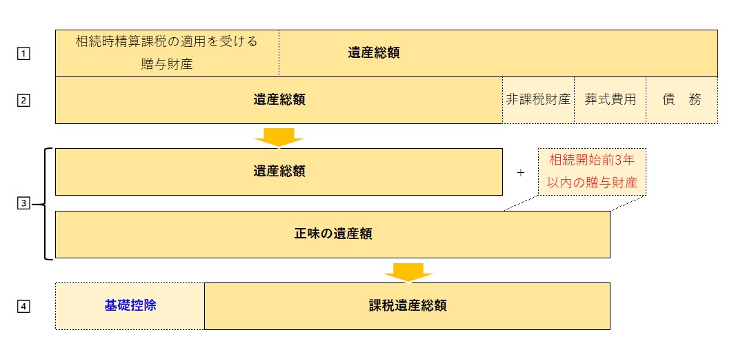 3.遺産額に相続開始前3年以内の暦年課税に係る贈与財産の価額を加算して、正味の遺産額を算出します。