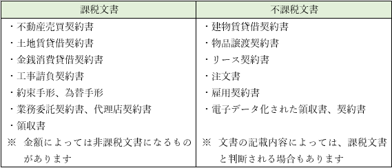・印紙税法別表第1(課税物件表)に掲げられている20種類の文書により証されるべき事項(課税事項)が記載されていること