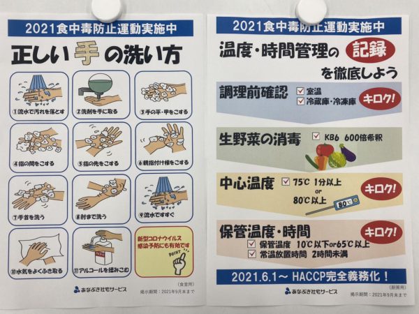 私たち調理従事者とお客様が互いに衛生意識を持って、念入りに「手洗い」を行うことが一番の予防となるのです。さらに毎年この時期になると調理従事者とお客様向けに文書やポスターにて注意喚起を呼びかけ、食中毒予防に尽力しております。
