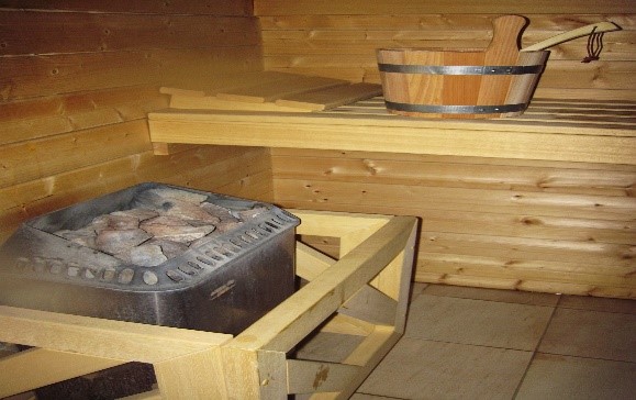 ロウリュ(熱した石に水をかける)で湿度を上げて発汗効果を高めるのが特徴です。
