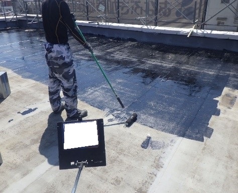 平場部分は既存アスファルト防水層上を良く清掃し、乾燥していることを確認し、下地調整材を塗布します。
