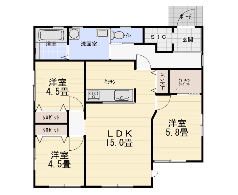 LDKは「居間と台所と食堂の機能が1室に併存する部屋」という意味です。