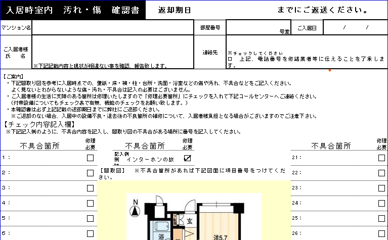 ここでのポイントは、室内の損傷個所が入居前からのものか、入居中に発生したものか確認することが重要です。