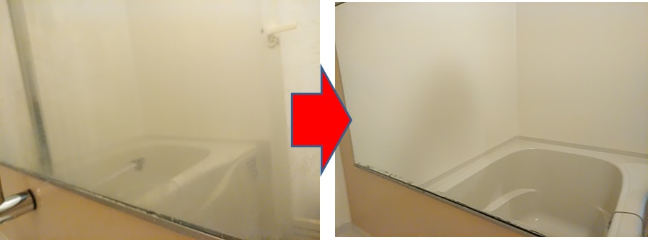 マンションの浴室の鏡も、お風呂を使っているうちにだんだんと白くくすんできたり、