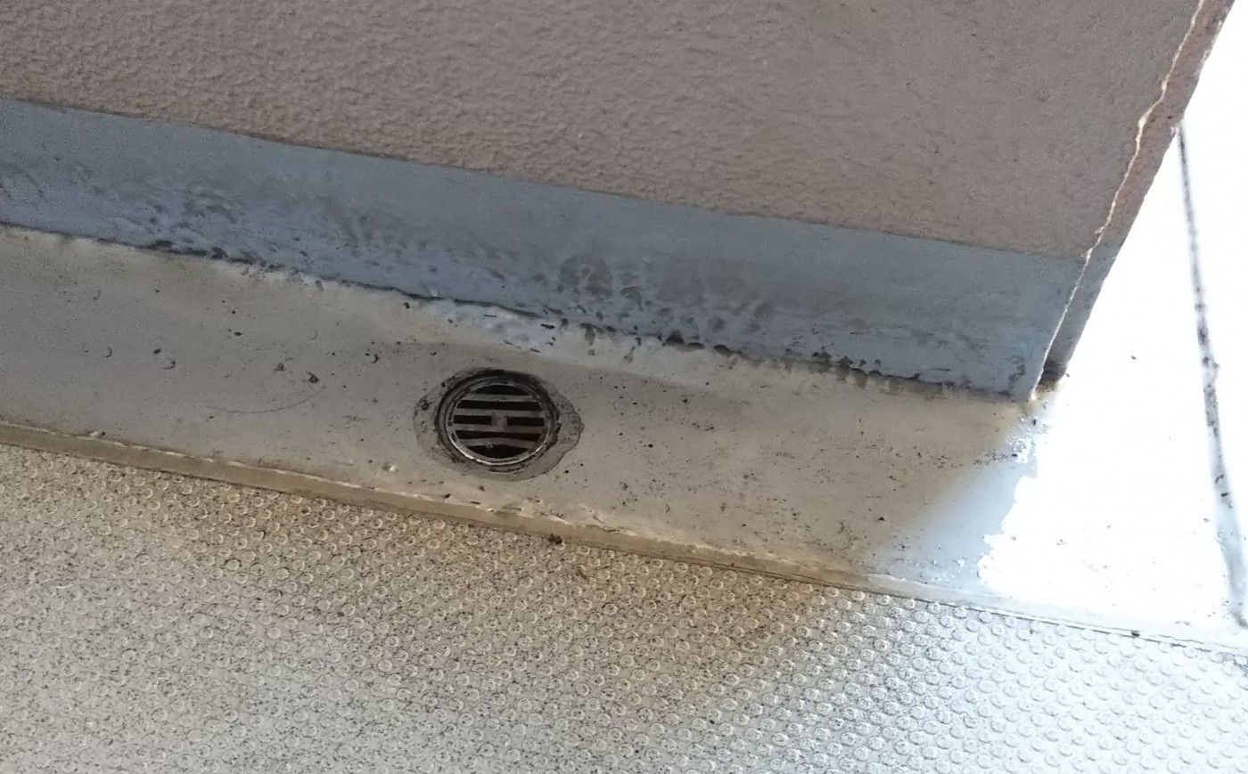 この写真は、マンションの排水溝が詰まって水が溜まっている様子です。